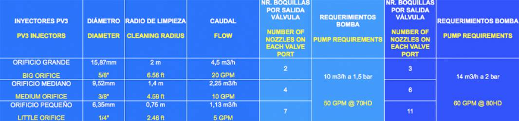 - If the Distance from the Cleaning System Pump to the farest nozzle is more than 15 meters, or in the line are to many fittings (as 90º Elbows) will be required a most powerfull pump.